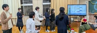 12月19日(金)に夜間部クリスマス会として、飾りつけをしてから、ハンドベルの演奏、トランプ、プレゼント交換などを行いました。