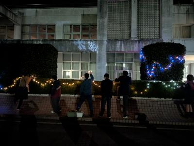 夜間部生徒が中心となって、イルミネーションの飾りつけをしました。 日が短くなってきて、夜間部生徒が登校する時間帯はすでに暗くなってきています。自分たちで飾り付けたイルミネーションを見て、寒い日でも温かい気持ちになってくれたらうれしいです。